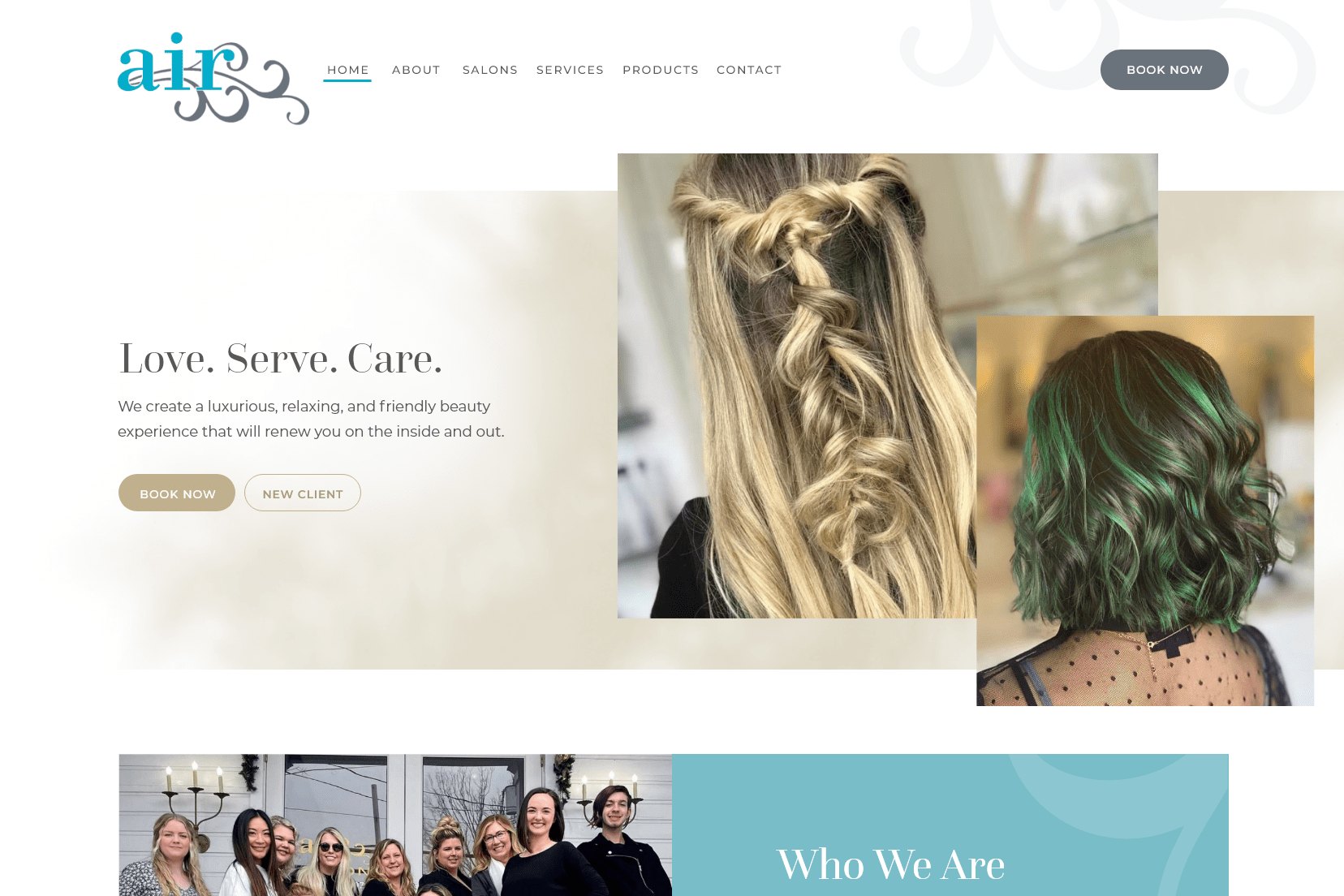 Air Salon was in need of a new website design that allowed them to better highlight their team and services so customers could more easily book appointments and qualify themselves into the proper area before the booking. We built a new website that allowed easy content management, multiple location pages with team listings and a multiple step form that could better qualify customers.