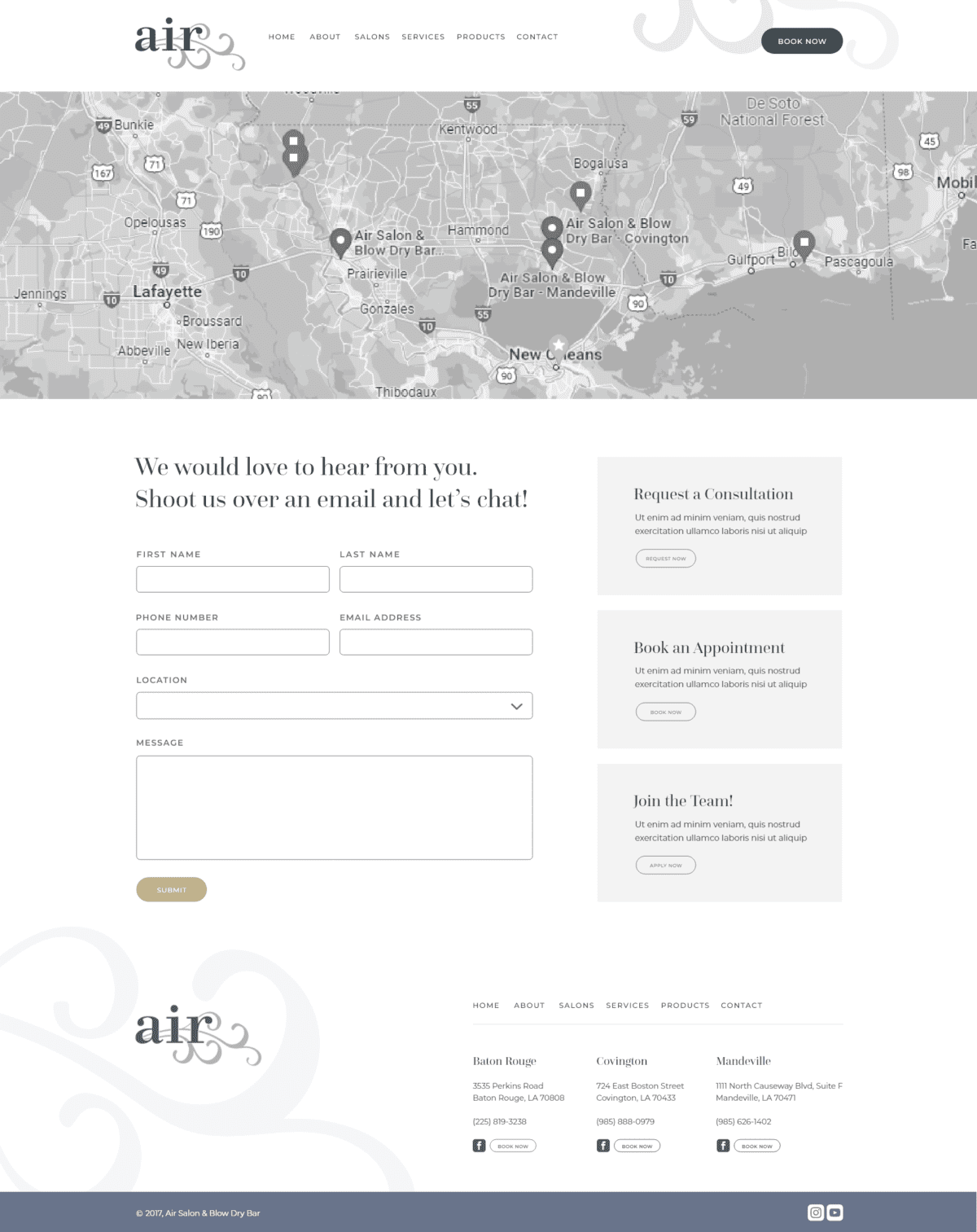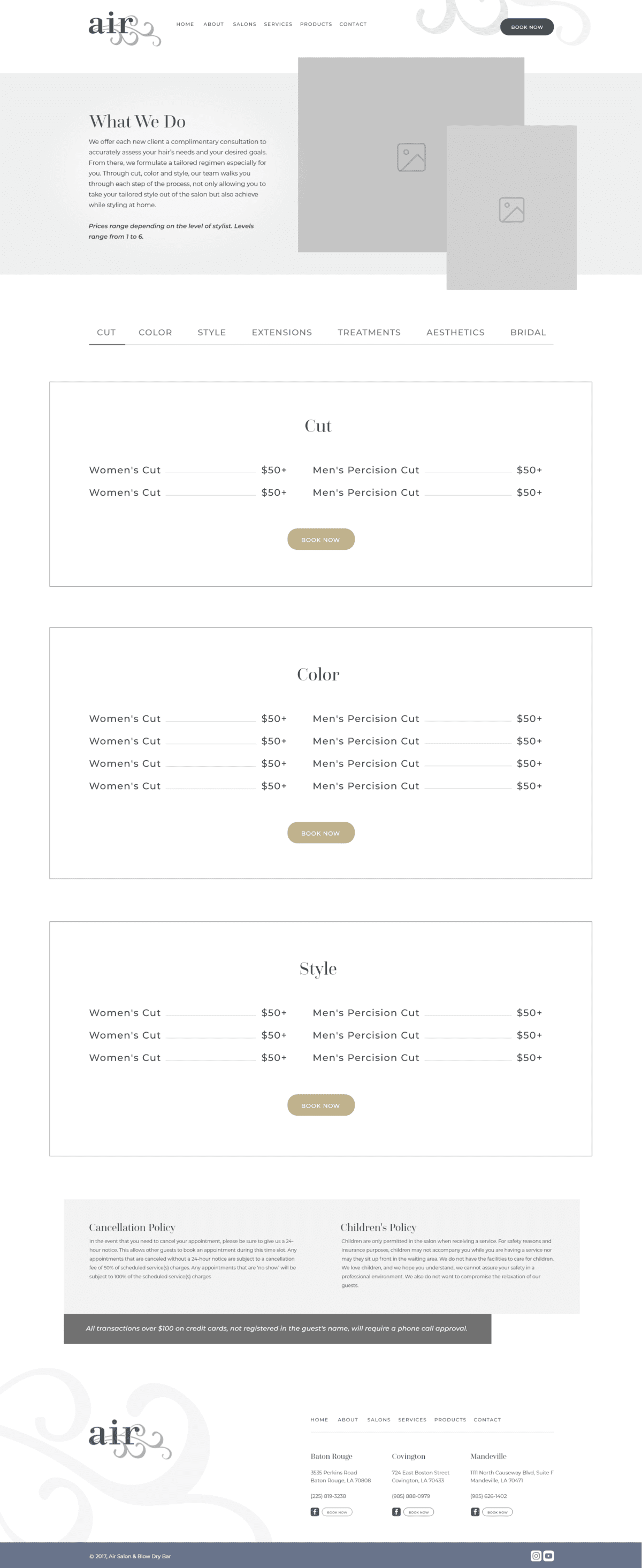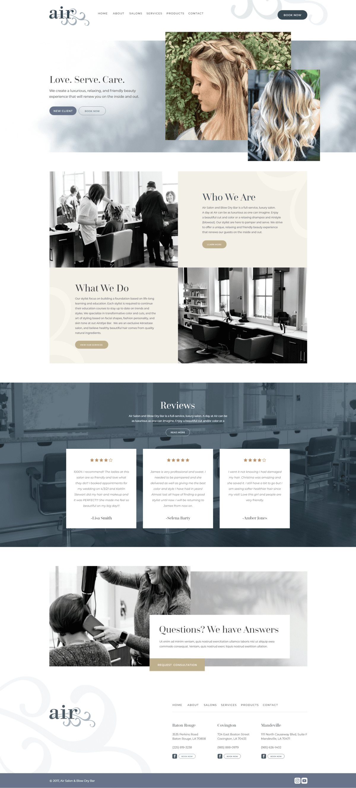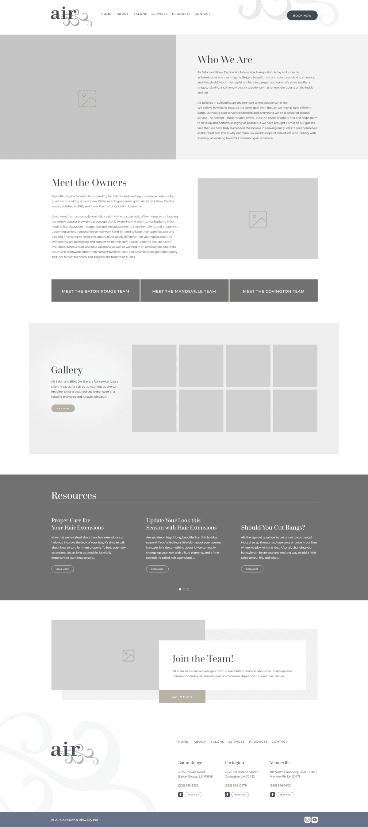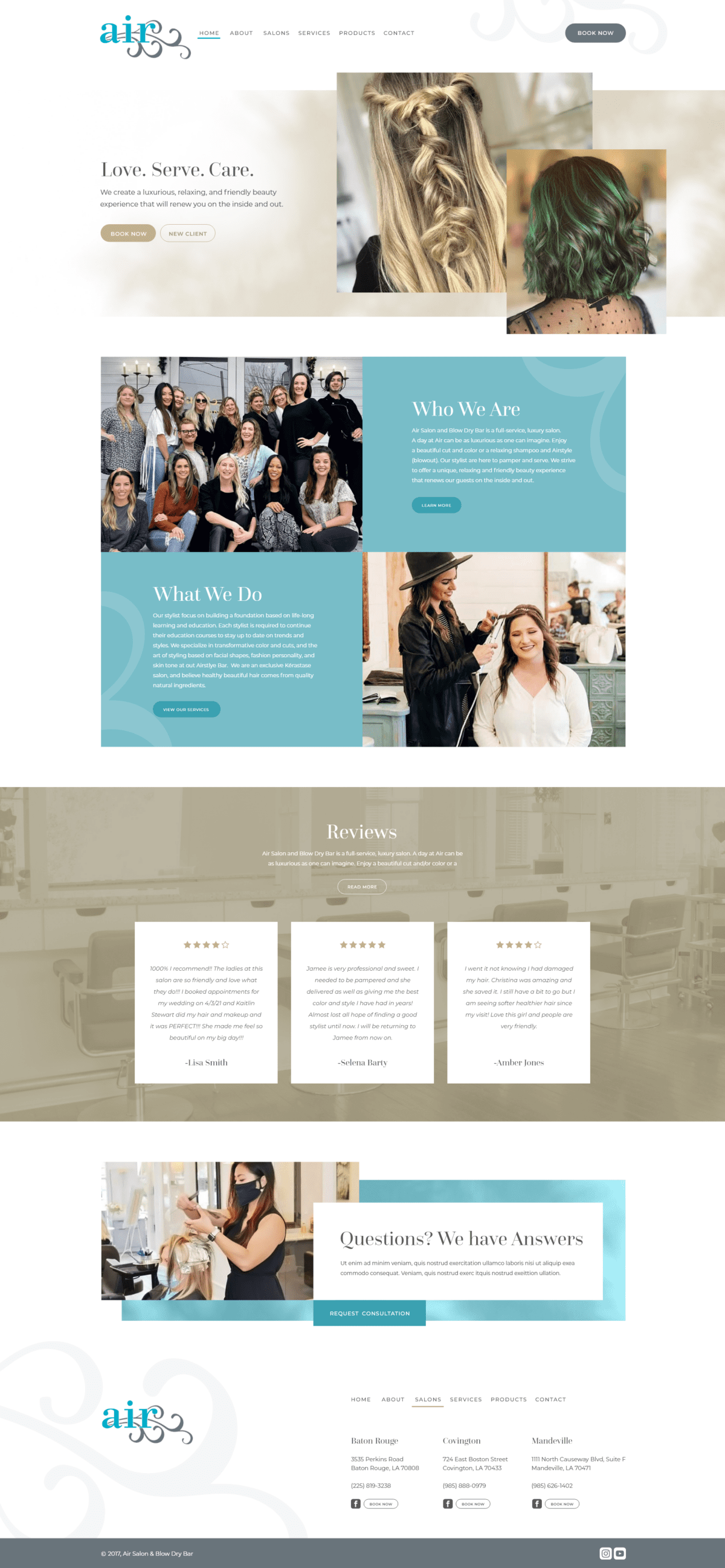 Air Salon was in need of a new website design that allowed them to better highlight their team and services so customers could more easily book appointments and qualify themselves into the proper area before the booking. We built a new website that allowed easy content management, multiple location pages with team listings and a multiple step form that could better qualify customers.
