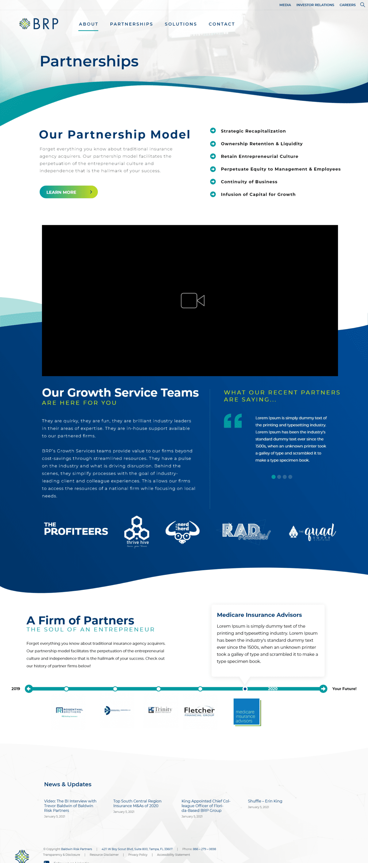 We built a new website and developed tools such as a business timeline and partner map in order to display information so it was easy to view. During the redesign the branding was in flux so the website also helped to establish a solid foundation for an updated brand. The website was developed into WordPress CMS for ease of editing for the client.