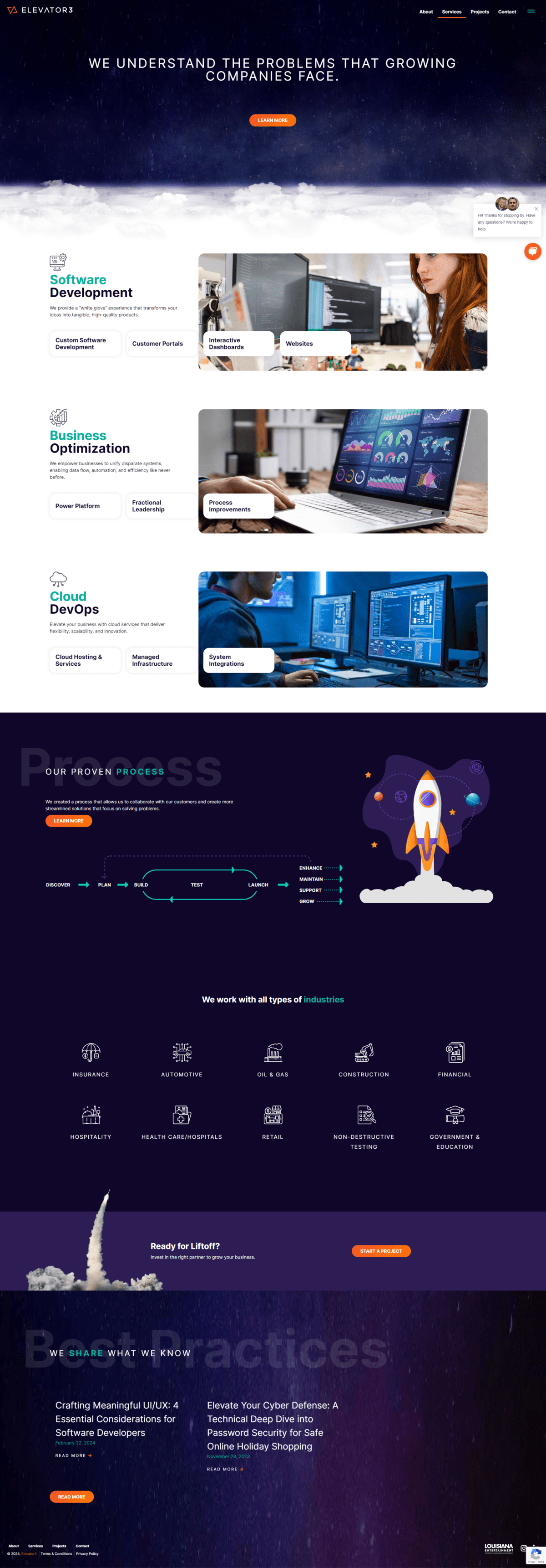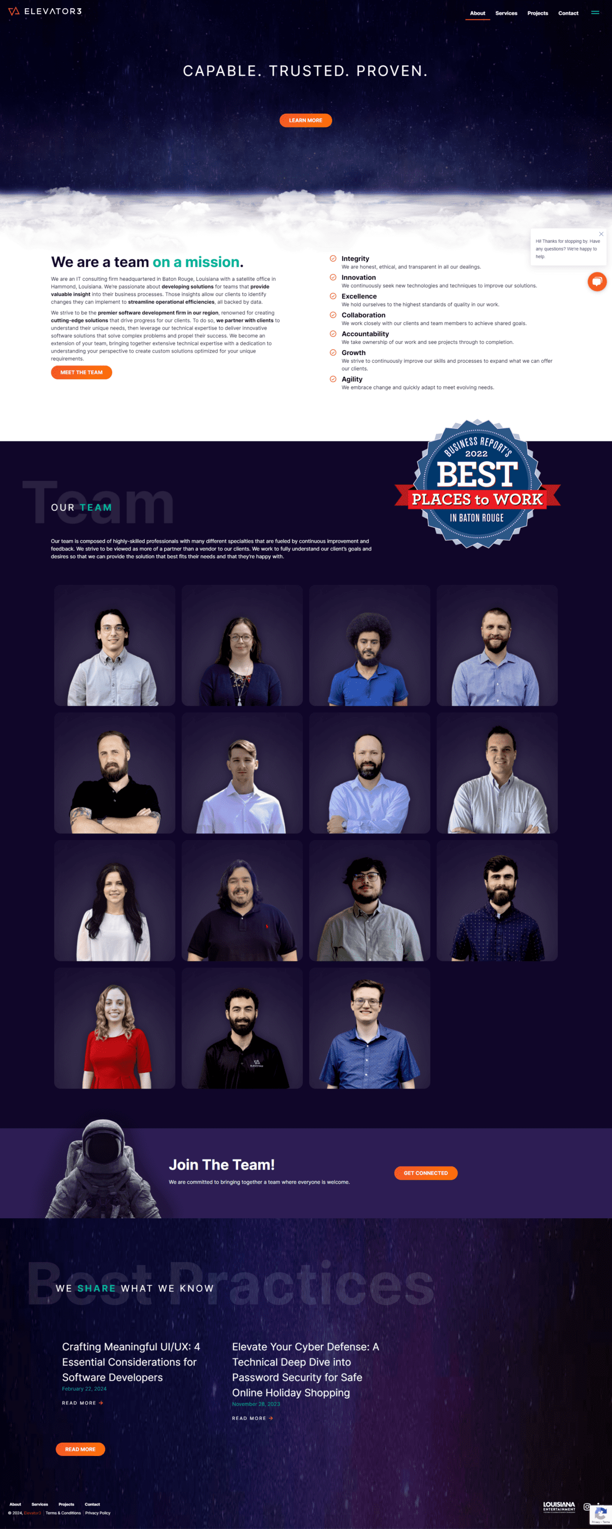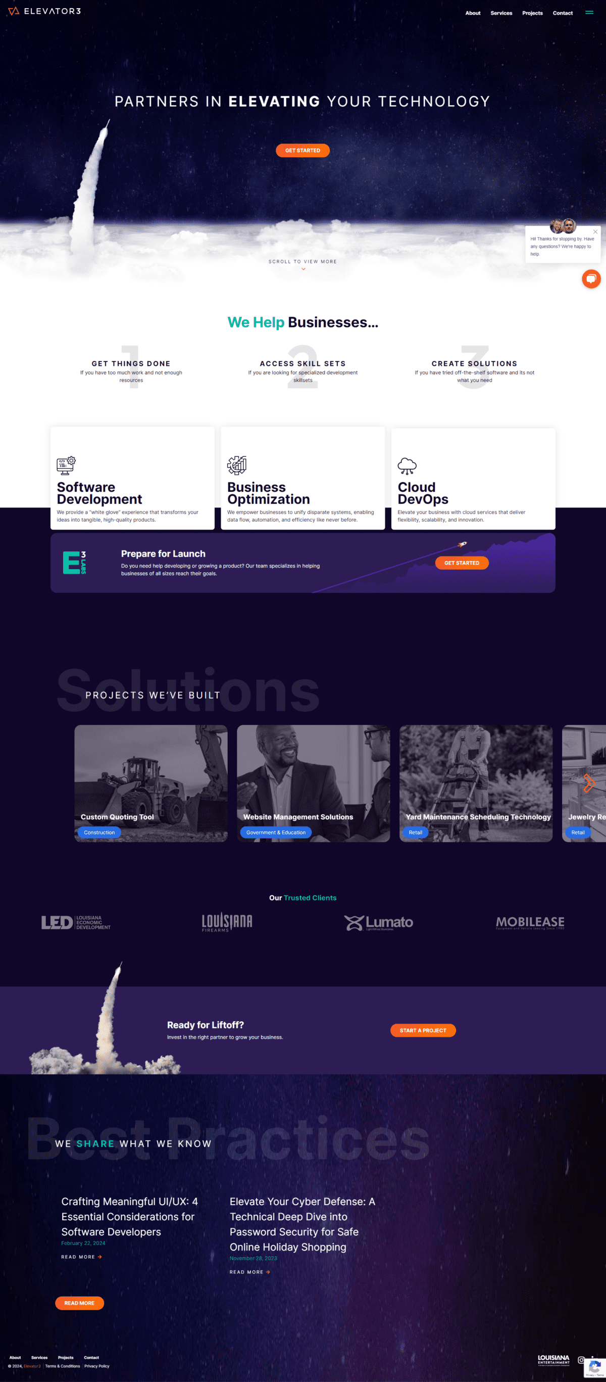 Elevator3, partners in elevating your technology, is an IT consulting firm headquartered in Baton Rouge, Louisiana, who strives to be the premier software development firm in their region, renowned for creating cutting-edge solutions that drive progress for their clients.